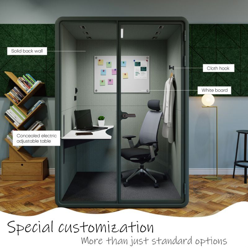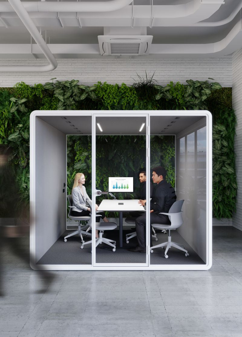 The Meeting Booth provide an expansive, fully soundproofed space for up to six people, making them the ideal choice for those needing maximum privacy and room for larger discussions. As the largest and most premium option in the lineup, these Booths deliver the ultimate in quiet, professional meeting environments.