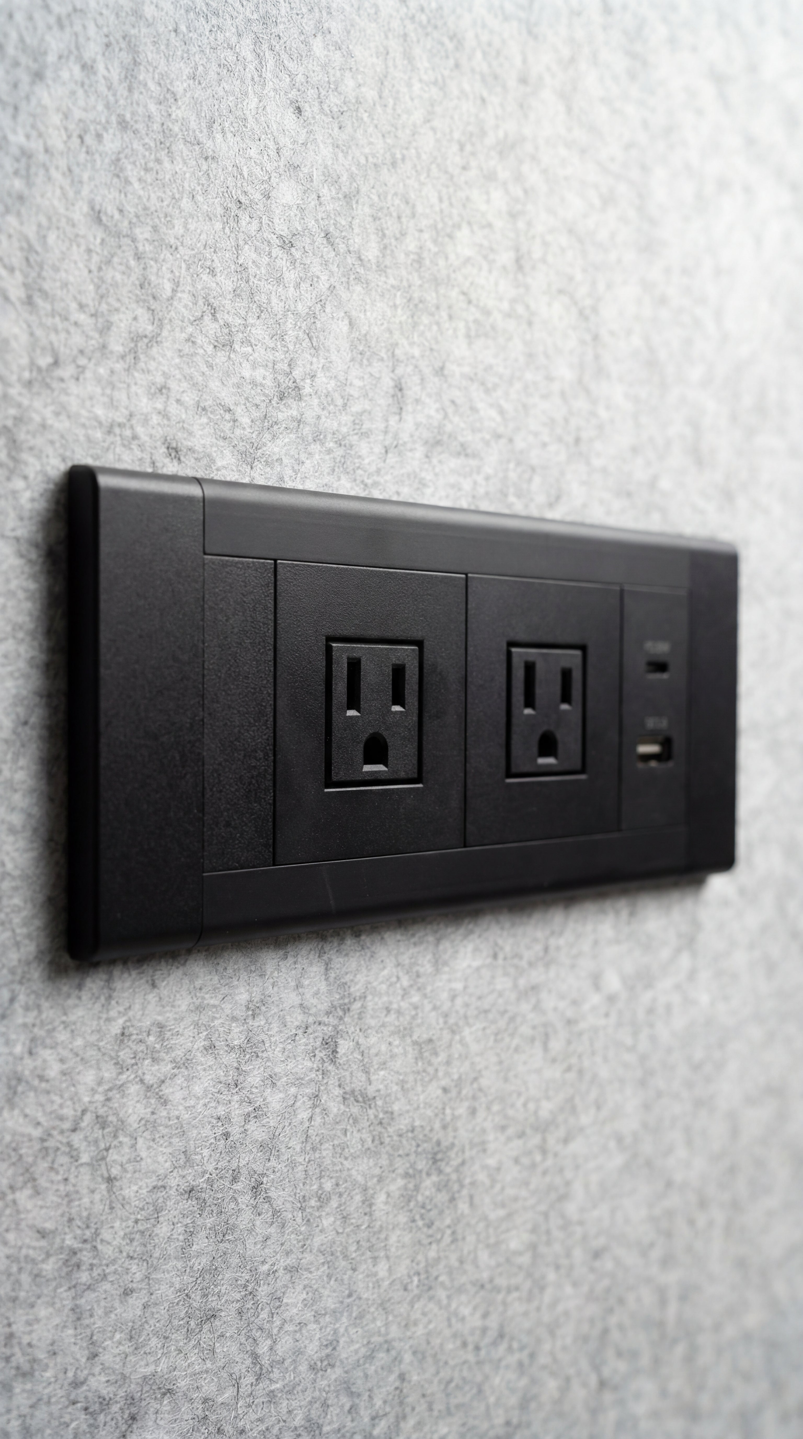 Each cabin connects to a standard 110V outlet and includes built-in LED lighting, power outlets, and USB ports. A quiet ventilation system continuously circulates fresh air without disrupting focus or audio quality.